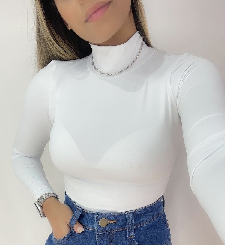 Blusa cacharrel gola alta, confeccionada em poliamida 100% original. Tecido macio, leve e gostoso ao toque, estica bastante e se ajusta ao corpo, super confortável!