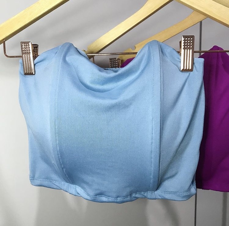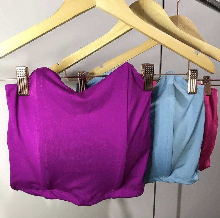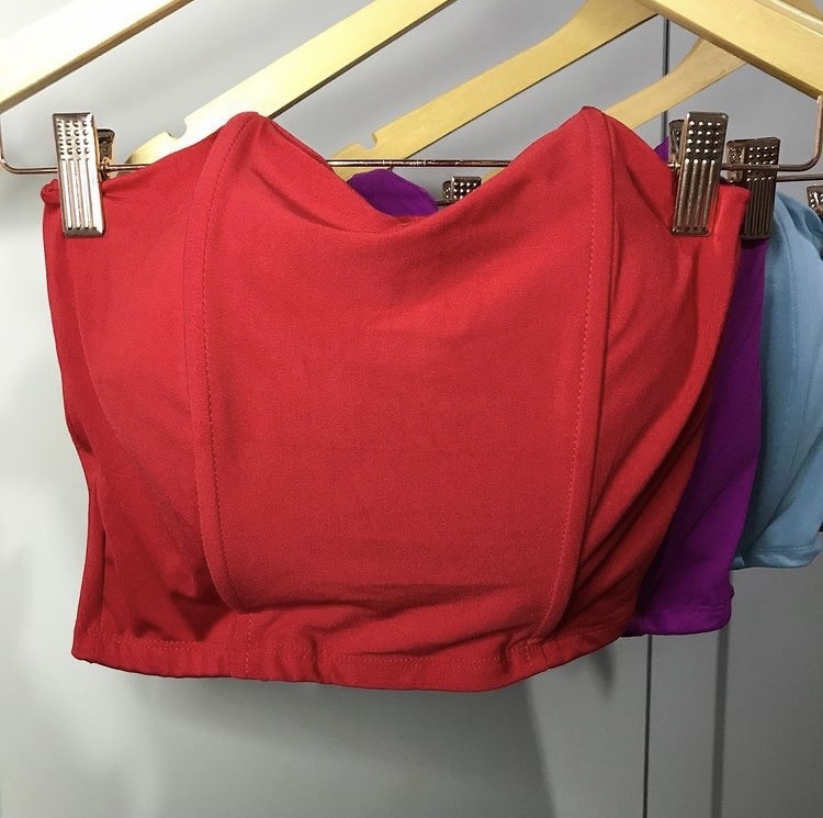 Cropped feito em suplex com elastano de ótima qualidade, estilo corselete contém bojo e barbatanas da ponta até o busto que modelam o corpo.