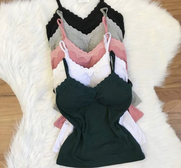 Aquela basiquinha que não pode faltar no guarda roupa! Ótima para compor qualquer tipo de look e usar no dia a dia, feita em viscomalha, tecido fresquinho e confortável, com bojo, decote rendado e alças reguláveis.